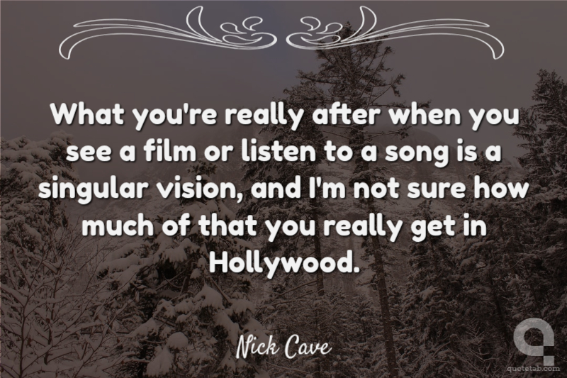 What you're really after when you see a film or listen to a song is a singular vision, and I'm not sure how much of that you really get in Hollywood.
