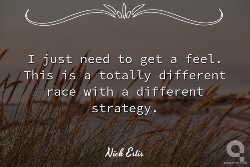 I just need to get a feel. This is a totally different race with a different strategy.