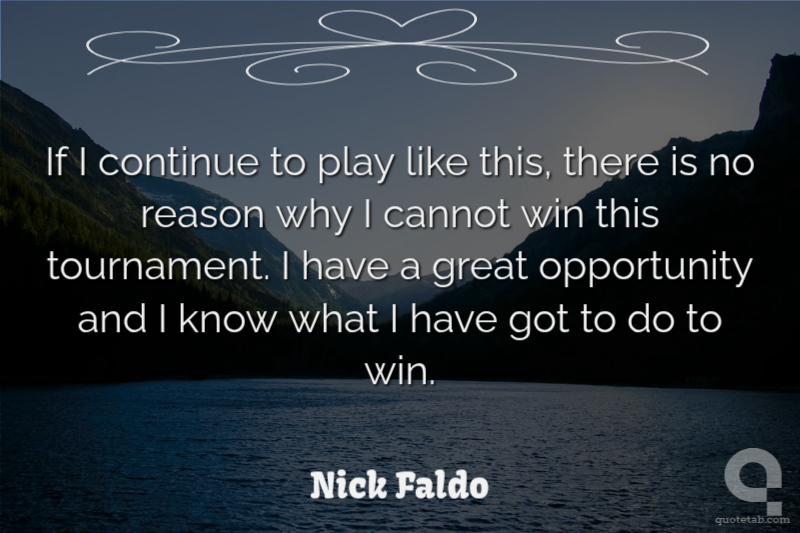 If I continue to play like this, there is no reason why I cannot win this tournament. I have a great opportunity and I know what I have got to do to win.