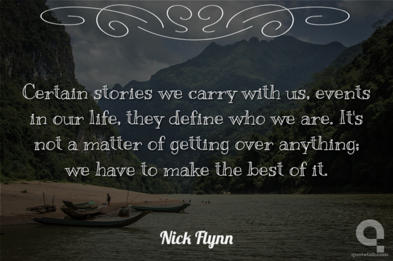 Certain stories we carry with us, events in our life, they define who we are. It's not a matter of getting over anything; we have to make the best of it.