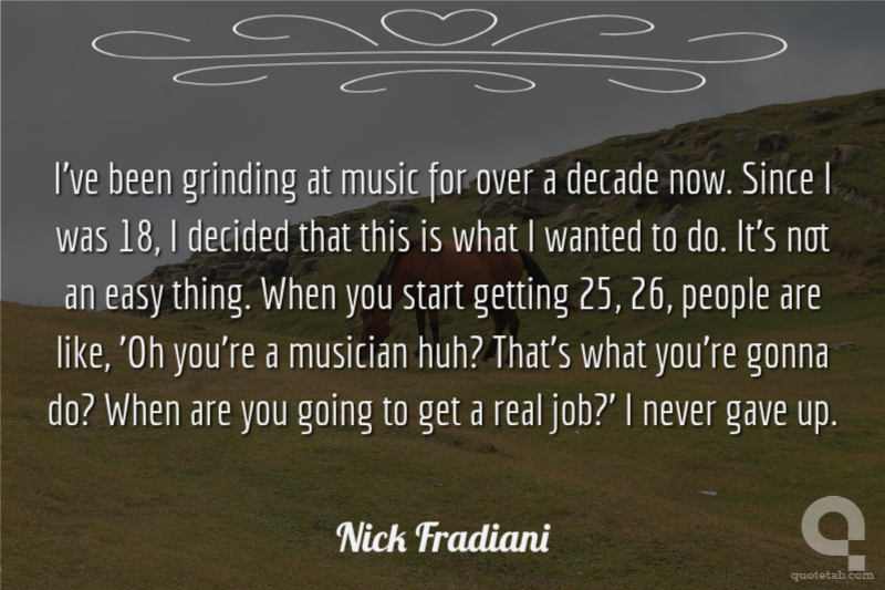 I've been grinding at music for over a decade now. Since I was 18, I decided that this is what I wanted to do. It's not an easy thing. When you start getting 25, 26, people are like, 'Oh you're a musician huh? That's what you're gonna do? When are you going to get a real job?' I never gave up.