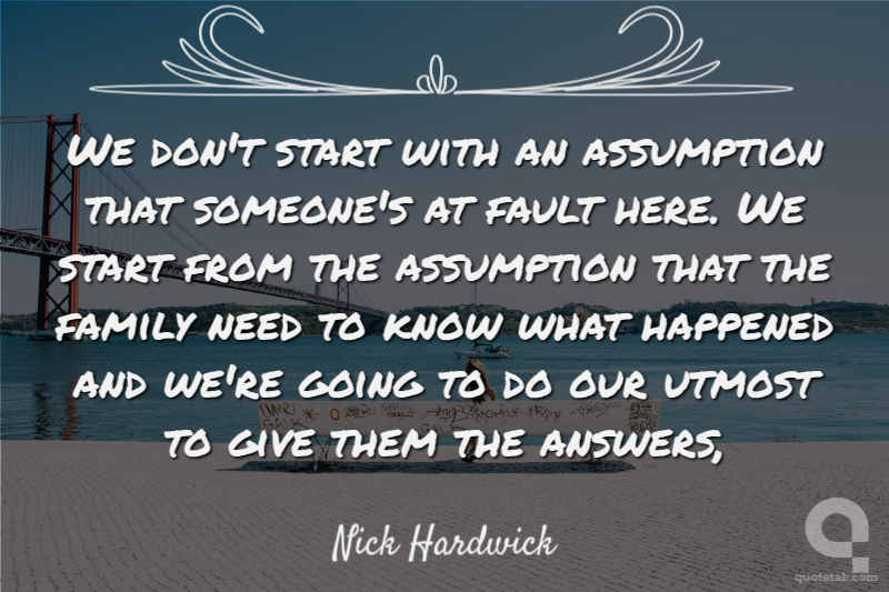 We don't start with an assumption that someone's at fault here. We start from the assumption that the family need to know what happened and we're going to do our utmost to give them the answers,