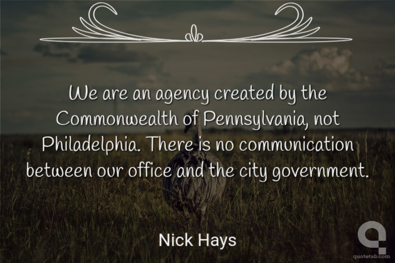 We are an agency created by the Commonwealth of Pennsylvania, not Philadelphia. There is no communication between our office and the city government.
