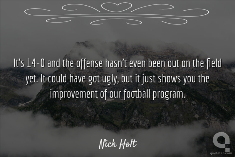 It's 14-0 and the offense hasn't even been out on the field yet. It could have got ugly, but it just shows you the improvement of our football program.