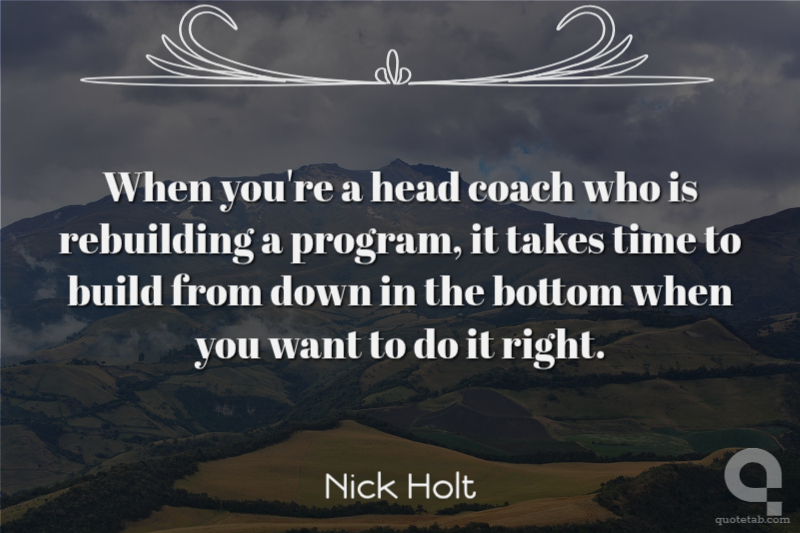 When you're a head coach who is rebuilding a program, it takes time to build from down in the bottom when you want to do it right.