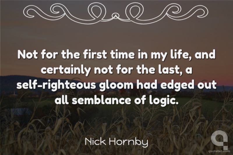 Not for the first time in my life, and certainly not for the last, a self-righteous gloom had edged out all semblance of logic.