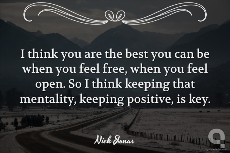 I think you are the best you can be when you feel free, when you feel open. So I think keeping that mentality, keeping positive, is key.