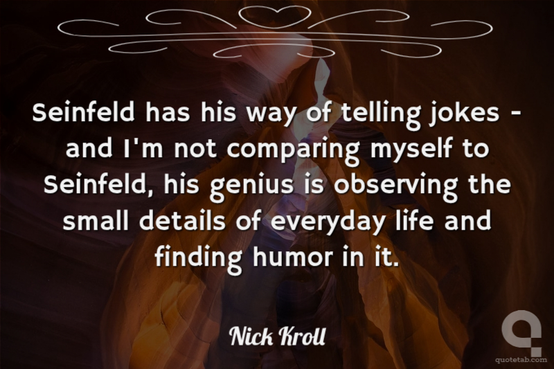Seinfeld has his way of telling jokes - and I'm not comparing myself to Seinfeld, his genius is observing the small details of everyday life and finding humor in it.