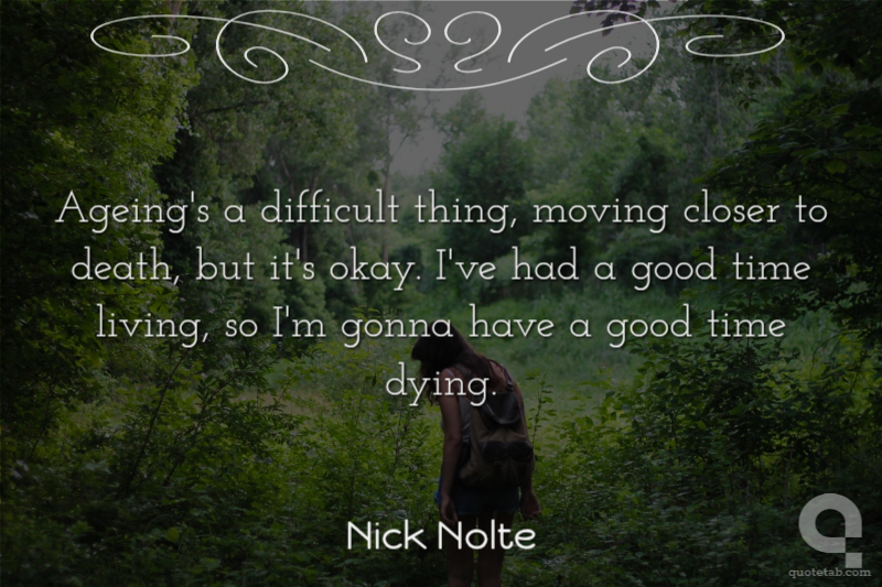 Ageing's a difficult thing, moving closer to death, but it's okay. I've had a good time living, so I'm gonna have a good time dying.