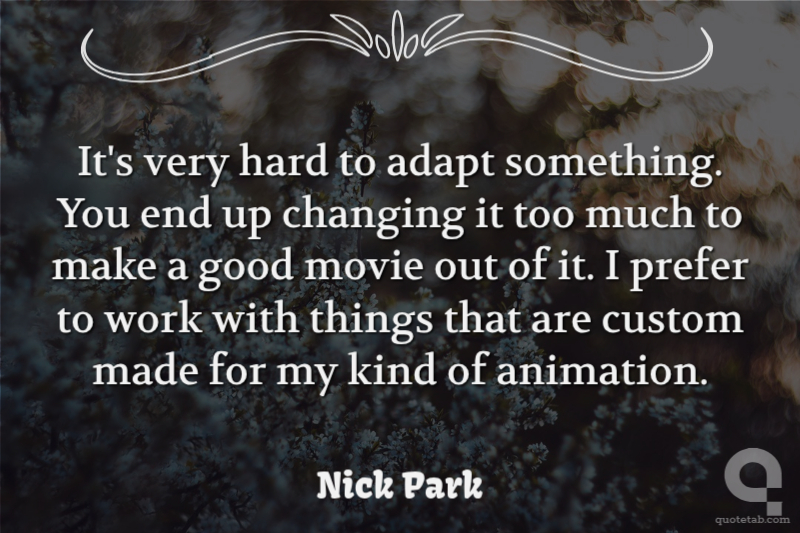 It's very hard to adapt something. You end up changing it too much to make a good movie out of it. I prefer to work with things that are custom made for my kind of animation.