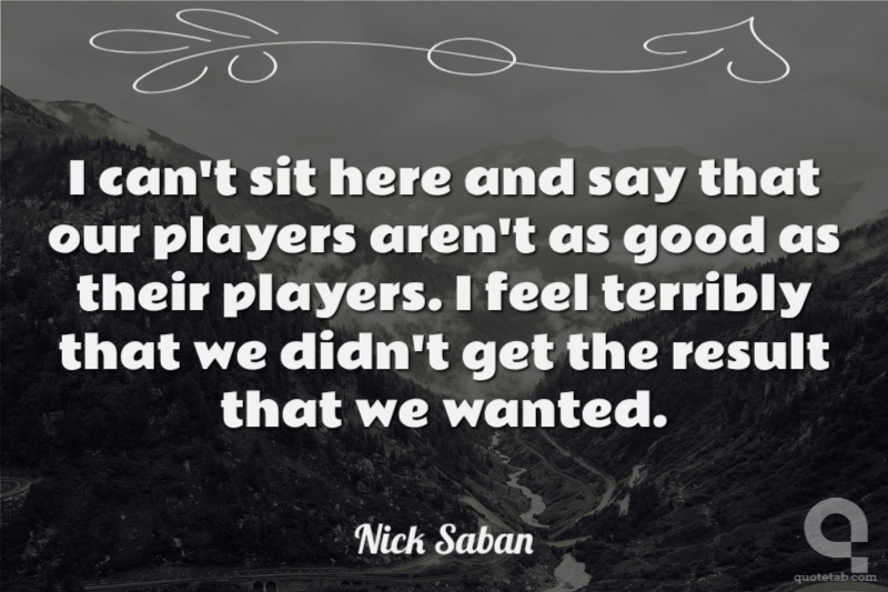 I can't sit here and say that our players aren't as good as their players. I feel terribly that we didn't get the result that we wanted.