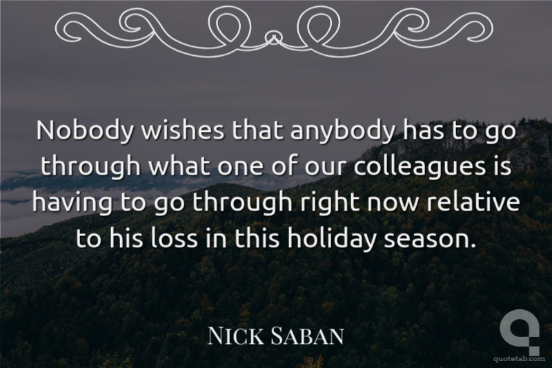 Nobody wishes that anybody has to go through what one of our colleagues is having to go through right now relative to his loss in this holiday season.