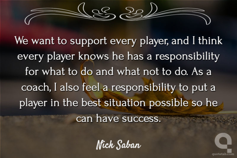 We want to support every player, and I think every player knows he has a responsibility for what to do and what not to do. As a coach, I also feel a responsibility to put a player in the best situation possible so he can have success.