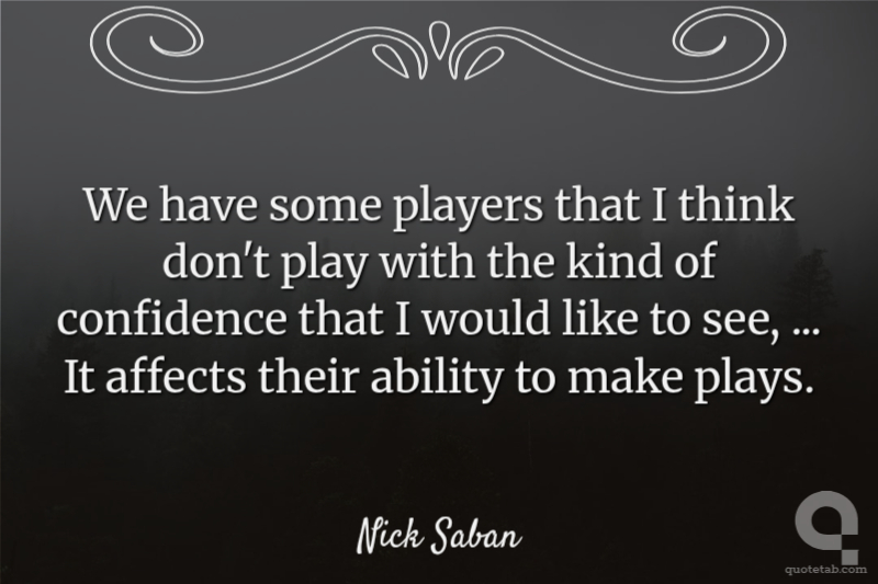 We have some players that I think don't play with the kind of confidence that I would like to see, ... It affects their ability to make plays.