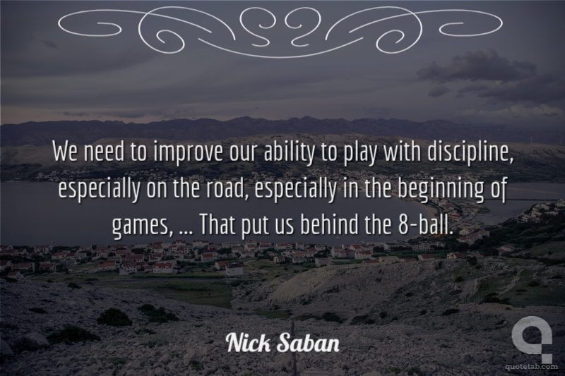 We need to improve our ability to play with discipline, especially on the road, especially in the beginning of games, ... That put us behind the 8-ball.