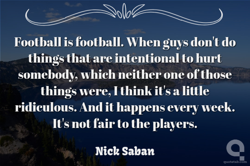 Football is football. When guys don't do things that are intentional to hurt somebody, which neither one of those things were, I think it's a little ridiculous. And it happens every week. It's not fair to the players.
