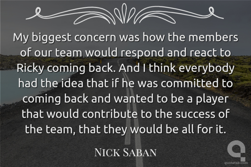 My biggest concern was how the members of our team would respond and react to Ricky coming back. And I think everybody had the idea that if he was committed to coming back and wanted to be a player that would contribute to the success of the team, that they would be all for it.