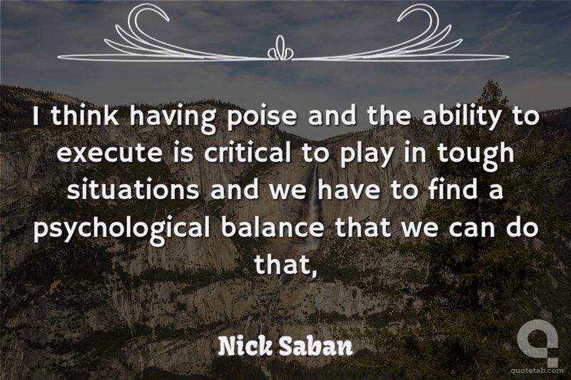 I think having poise and the ability to execute is critical to play in tough situations and we have to find a psychological balance that we can do that,