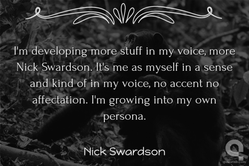 I'm developing more stuff in my voice, more Nick Swardson. It's me as myself in a sense and kind of in my voice, no accent no affectation. I'm growing into my own persona.