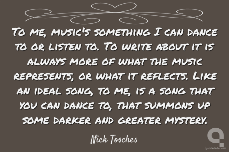 To me, music's something I can dance to or listen to. To write about it is always more of what the music represents, or what it reflects. Like an ideal song, to me, is a song that you can dance to, that summons up some darker and greater mystery.