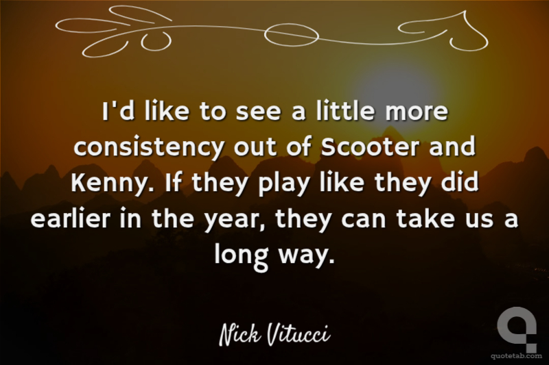 I'd like to see a little more consistency out of Scooter and Kenny. If they play like they did earlier in the year, they can take us a long way.