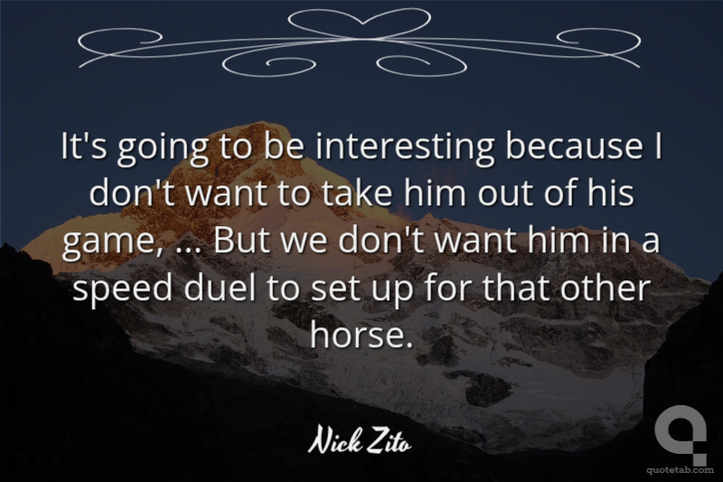 It's going to be interesting because I don't want to take him out of his game, ... But we don't want him in a speed duel to set up for that other horse.