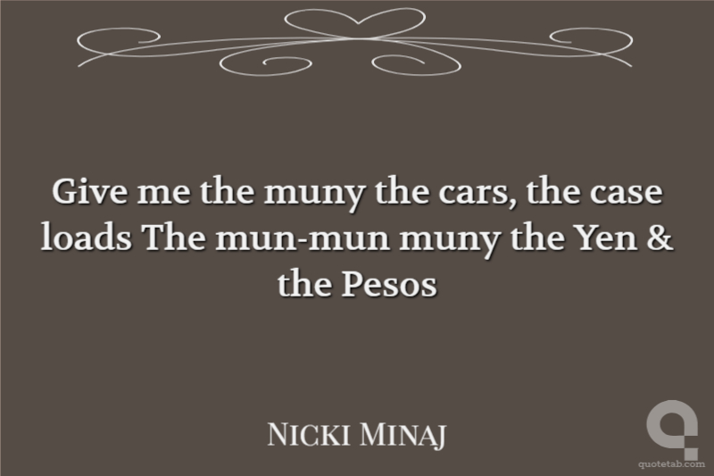 Give me the muny the cars, the case loads The mun-mun muny the Yen & the Pesos