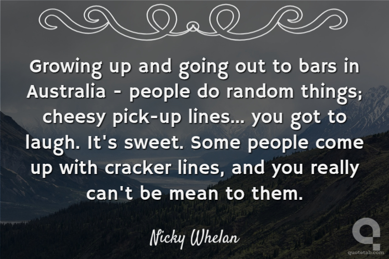 Growing up and going out to bars in Australia - people do random things; cheesy pick-up lines... you got to laugh. It's sweet. Some people come up with cracker lines, and you really can't be mean to them.
