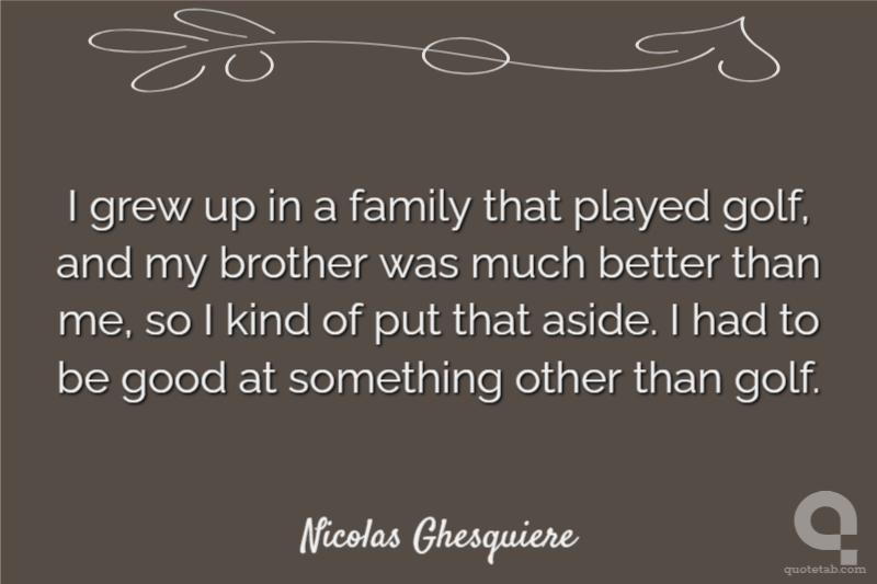 I grew up in a family that played golf, and my brother was much better than me, so I kind of put that aside. I had to be good at something other than golf.