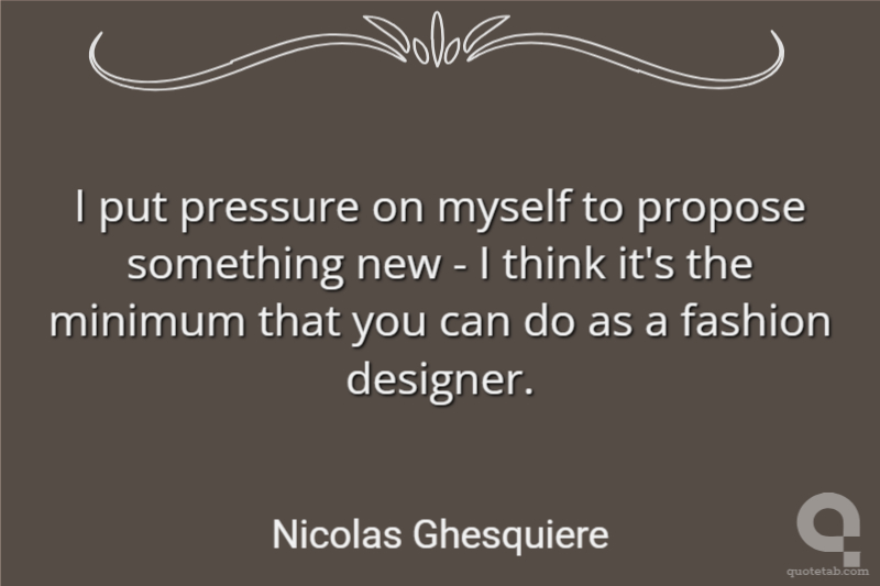 I put pressure on myself to propose something new - I think it's the minimum that you can do as a fashion designer.