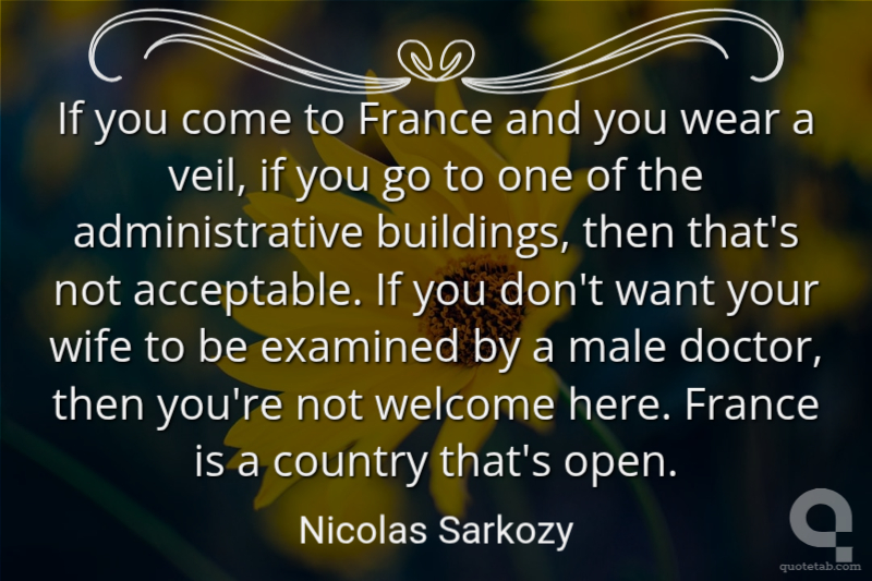 If you come to France and you wear a veil, if you go to one of the administrative buildings, then that's not acceptable. If you don't want your wife to be examined by a male doctor, then you're not welcome here. France is a country that's open.