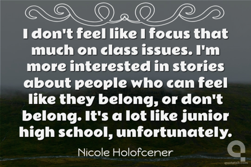I don't feel like I focus that much on class issues. I'm more interested in stories about people who can feel like they belong, or don't belong. It's a lot like junior high school, unfortunately.