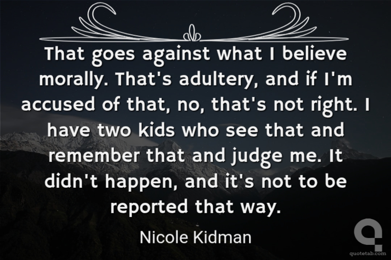 That goes against what I believe morally. That's adultery, and if I'm accused of that, no, that's not right. I have two kids who see that and remember that and judge me. It didn't happen, and it's not to be reported that way.