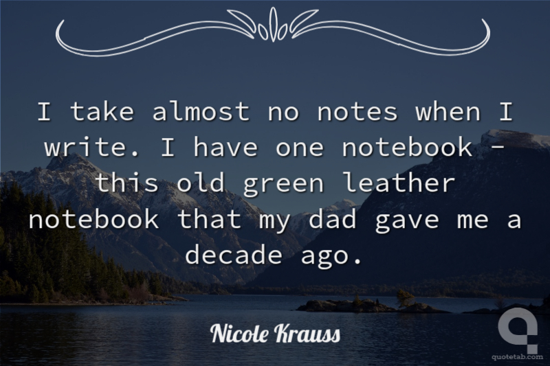 I take almost no notes when I write. I have one notebook - this old green leather notebook that my dad gave me a decade ago.