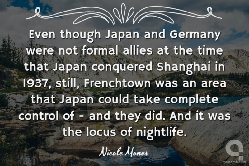 Even though Japan and Germany were not formal allies at the time that Japan conquered Shanghai in 1937, still, Frenchtown was an area that Japan could take complete control of - and they did. And it was the locus of nightlife.