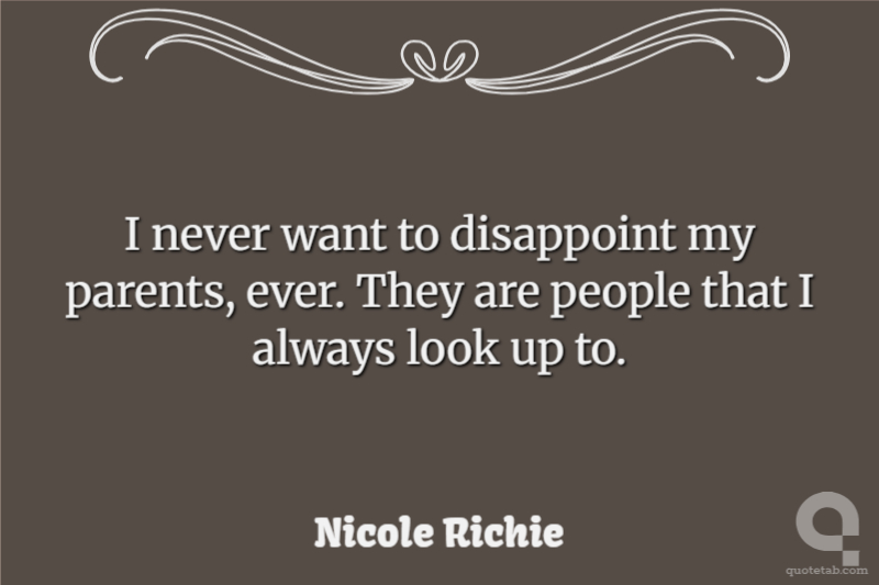 I never want to disappoint my parents, ever. They are people that I always look up to.