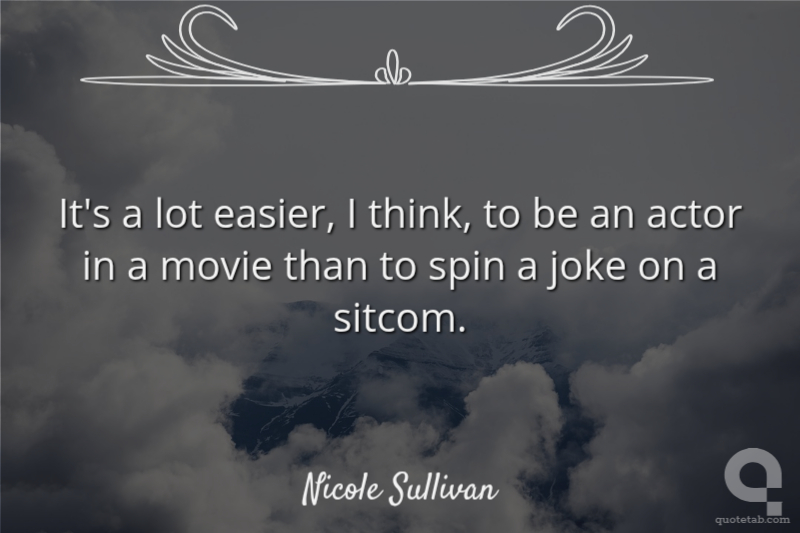 It's a lot easier, I think, to be an actor in a movie than to spin a joke on a sitcom.