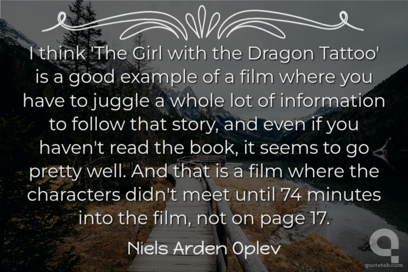 I think 'The Girl with the Dragon Tattoo' is a good example of a film where you have to juggle a whole lot of information to follow that story, and even if you haven't read the book, it seems to go pretty well. And that is a film where the characters didn't meet until 74 minutes into the film, not on page 17.
