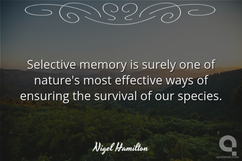 Selective memory is surely one of nature's most effective ways of ensuring the survival of our species.