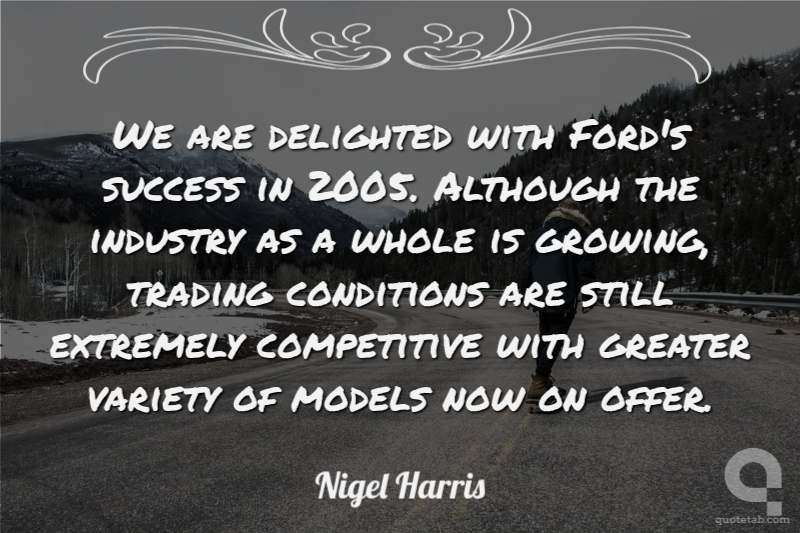 We are delighted with Ford's success in 2005. Although the industry as a whole is growing, trading conditions are still extremely competitive with greater variety of models now on offer.