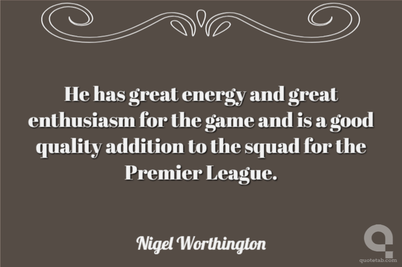 He has great energy and great enthusiasm for the game and is a good quality addition to the squad for the Premier League.