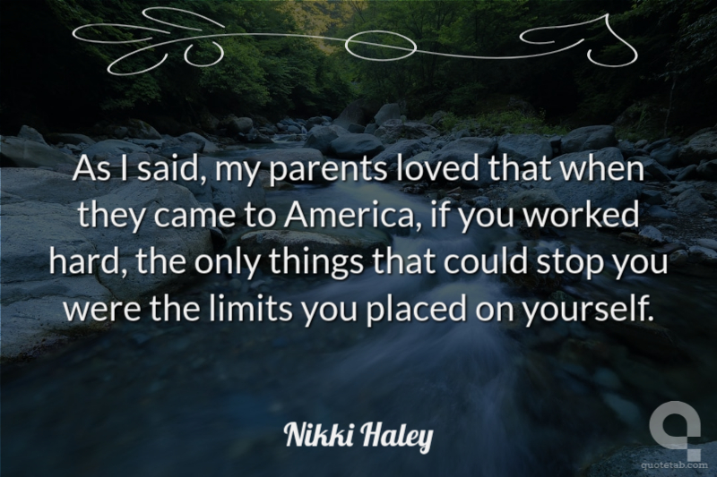 As I said, my parents loved that when they came to America, if you worked hard, the only things that could stop you were the limits you placed on yourself.