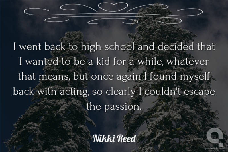I went back to high school and decided that I wanted to be a kid for a while, whatever that means, but once again I found myself back with acting, so clearly I couldn't escape the passion.