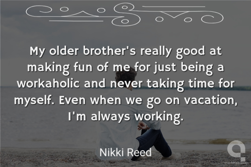 My older brother's really good at making fun of me for just being a workaholic and never taking time for myself. Even when we go on vacation, I'm always working.