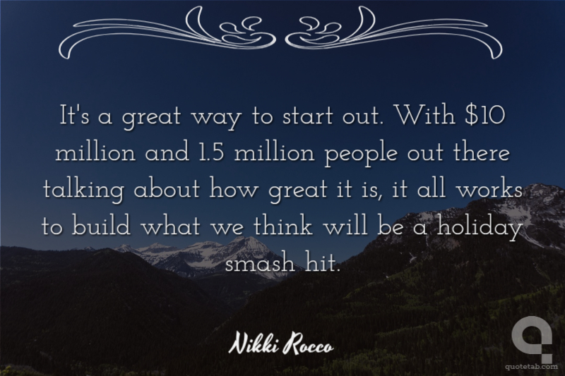 It's a great way to start out. With $10 million and 1.5 million people out there talking about how great it is, it all works to build what we think will be a holiday smash hit.