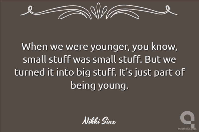 When we were younger, you know, small stuff was small stuff. But we turned it into big stuff. It's just part of being young.