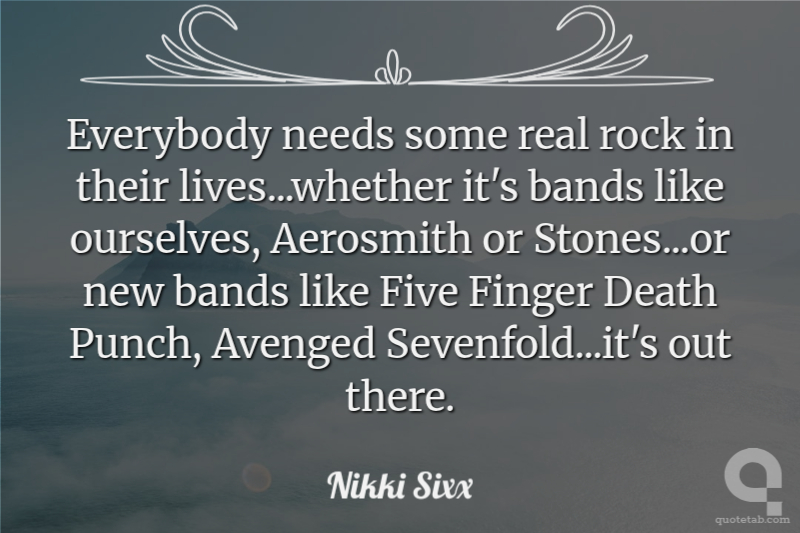 Everybody needs some real rock in their lives...whether it's bands like ourselves, Aerosmith or Stones...or new bands like Five Finger Death Punch, Avenged Sevenfold...it's out there.