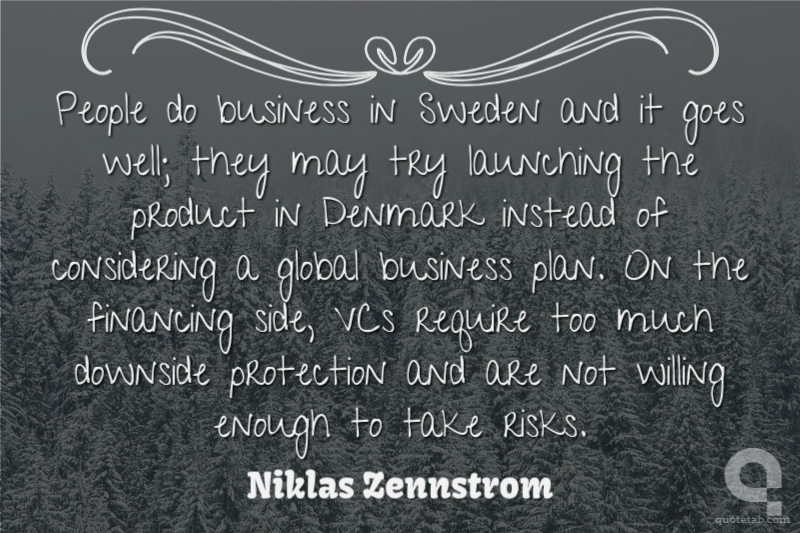 People do business in Sweden and it goes well; they may try launching the product in Denmark instead of considering a global business plan. On the financing side, VCs require too much downside protection and are not willing enough to take risks.