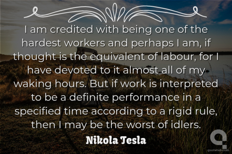 I am credited with being one of the hardest workers and perhaps I am, if thought is the equivalent of labour, for I have devoted to it almost all of my waking hours. But if work is interpreted to be a definite performance in a specified time according to a rigid rule, then I may be the worst of idlers.
