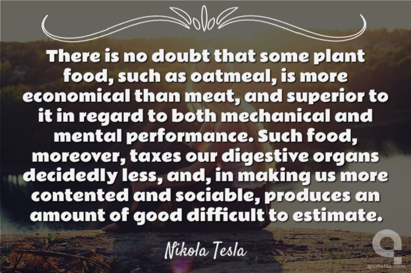 There is no doubt that some plant food, such as oatmeal, is more economical than meat, and superior to it in regard to both mechanical and mental performance. Such food, moreover, taxes our digestive organs decidedly less, and, in making us more contented and sociable, produces an amount of good difficult to estimate.